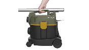 Grande pédale pour une utilisation pratique. Avec réglage électronique de la puissance. Sacs filtrants en non-tissé de haute qualité selon la classe de filtration HEPA 13 avec un degré de séparation > 99,95 %. Toujours bien rangé : six emplacements pour les accessoires et crochet verrouillable pour le câble d'alimentation. Le couvercle de l'appareil avec l'unité moteur peut être retiré pour faciliter le vidage de la cuve.