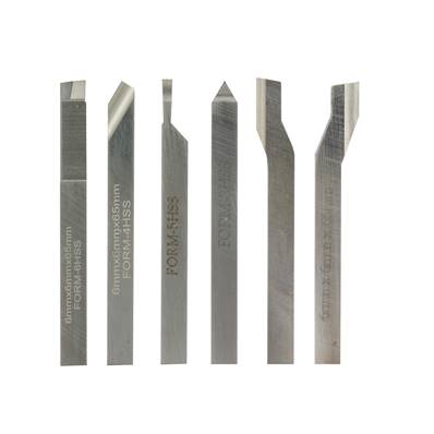 Outil de creusage, dégrossissage, outil de tronçonnage, outil de finition, outil à charioter coudé droit et outil à charioter coudé gauche.